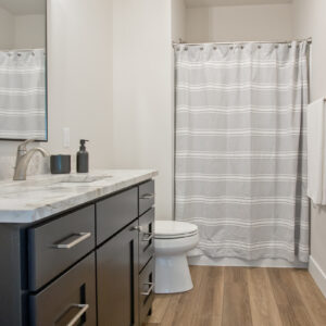 This home incorporates modern elements such as smooth lines, glossy accents, and neutral color schemes with the cozy, easygoing farmhouse style.
